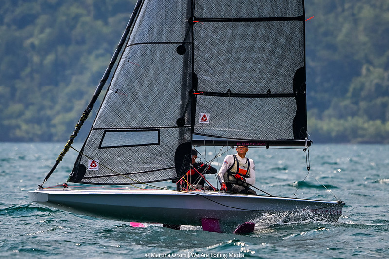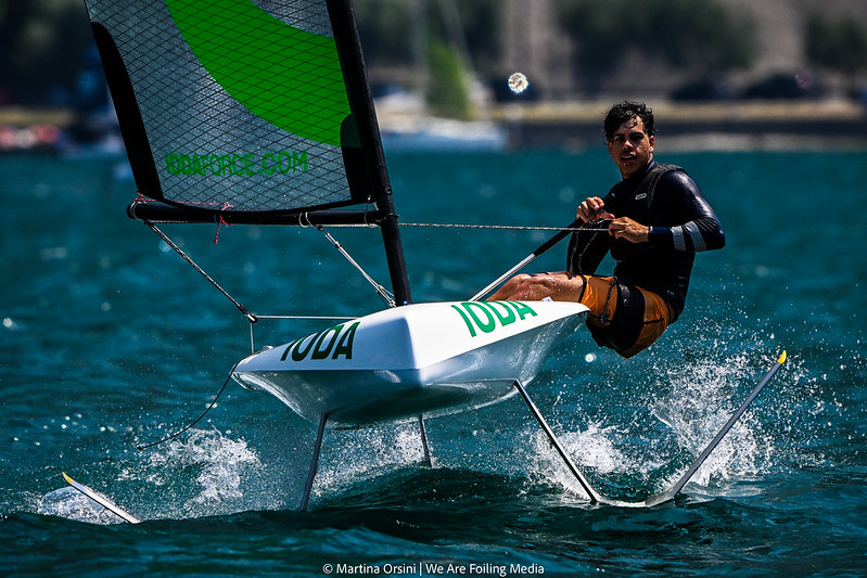 The IODA is a French single-handed foiling dinghy built by the Tocatec shipyard, designed to open foiling up to lighter sailors and juniors transitioning from the Optimist. It takes off in around 8 knots of breeze and reaches 23 knots, offering a genuine flying experience without the steep learning curve of more demanding platforms.